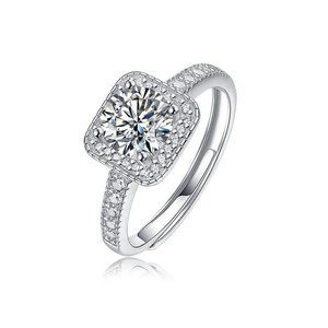 Certified 1ct. t.w. Moissanite Diamond Square Halo Wedding Engagement Ring NEW
