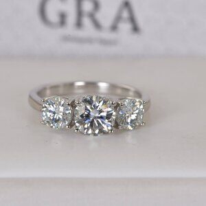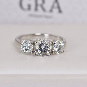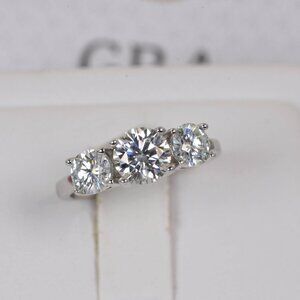 Certified 2.0ct 3 Stone Brilliant Cut Moissanite Engagement Ring