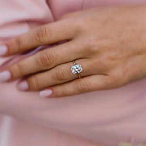 Certified 2.5 ct. t.w. Moissanite Diamond Emerald Cut Engagement Ring NEW