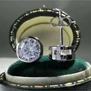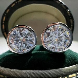 Ideal for a man or women, these blingy moissanite earring studs sparkle in every direction with timeless and elegant style in a bezel set solitaire setting, making each gem the star of the show.