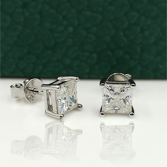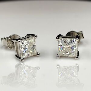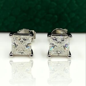 Certified 2ct Moissanite Princess Cut Luxury Stud Earrings UNISEX