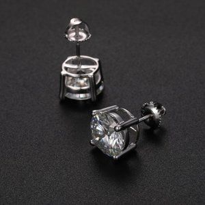 Certified 2ct. t.w. Diamond Moissanite Round Stud Earrings NEW