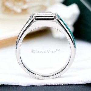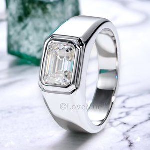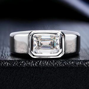 Certified 2ct. t.w. Emerald Cut Diamond Moissanite Unisex Wedding Ring VVS1