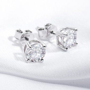 Certified 2ct. t.w. Moissanite Diamond 4 Prone Solitaire Stud Earrings NEW