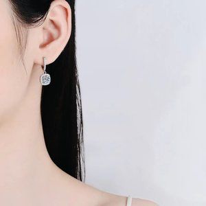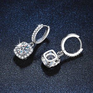 Certified 2ct. t.w. Moissanite Diamond Cushion Halo Drop Hoop Earrings NEW