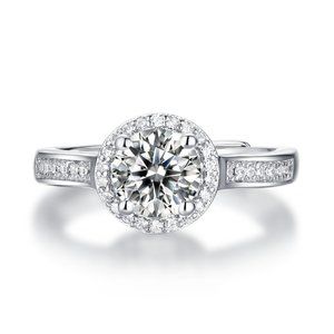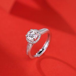 Certified 2ct. t.w. Moissanite Diamond Halo Engagement Ring NEW