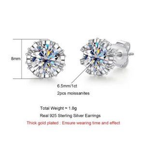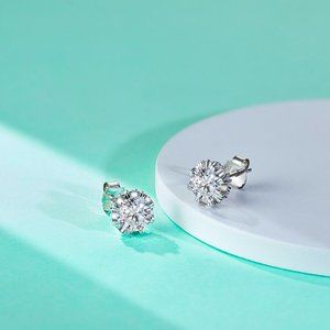 Certified 2ct. t.w. Moissanite Diamond Round Stud Earrings NEW A