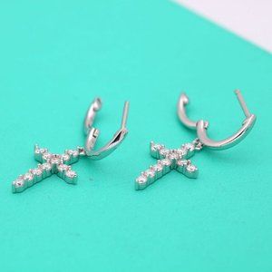 Certified 2mm Moissanite Diamond Cross Huggie Hoop Earrings NEW