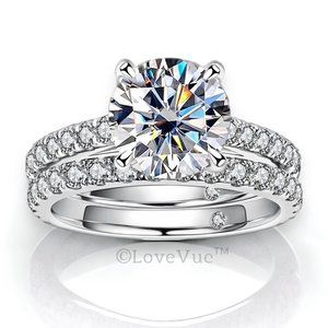 Certified 4.14ct. t.w. Diamond Moissanite 4-Prong Wedding Set VVS1 GRA Certified