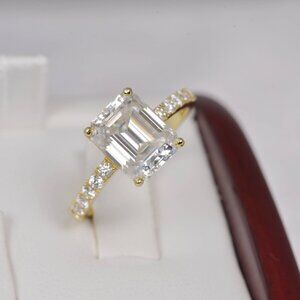 Certified 4.8ct Emerald Cut Full Moissanite Engagement Ring