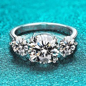Certified 4ct. t.w. Moissanite Diamond 3 Stone Wedding Engagement Ring NEW
