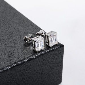 Certified 4ct. t.w. Moissanite Diamond Emerald Cut Stud Earrings NEW