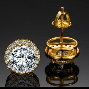 Certified 4ct. t.w. Moissanite Diamond Round Halo Stud Earrings NEW