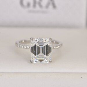 Certified 5.5ct Emerald Cut Moissanite Engagement Ring 925