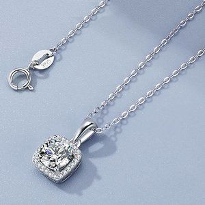 Certified 5ct. t.w. Moissanite Diamond Square Halo Necklace NEW
