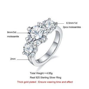 Certified 5ct. t.w. Moissanite Diamond Three Stone Engagement Ring NEW