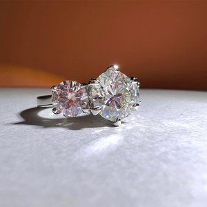 Certified 5ct. t.w. Moissanite Diamond Three Stone Engagement Ring NEW
