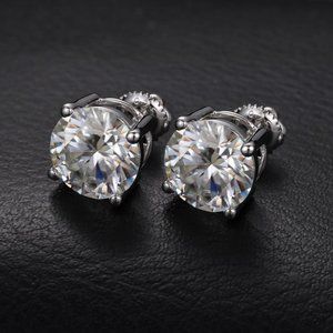 Certified 8ct. t.w. Moissanite Diamond Round Stud Earrings NEW A
