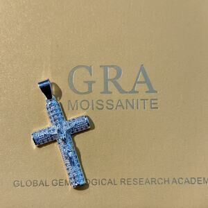 This Certified Genuine Moissanite set in Solid 925 Sterling Silver Men’s Iced Cross Pendant is a stunning and meaningful piece of jewelry. The pendant features a lab-created white Moissanite stone set in a prong setting, with excellent cut grade and very, very slightly included (VVS1) diamond clarity grade. The pendant is crafted with high-quality sterling silver and is certified by GRA. It is perfect for occasions like Christmas, anniversaries, Father's Day, and birthdays, making it a thoughtful and stylish gift for any man. This pendant will come packaged in the clear box with all certification shown. Don’t miss out on this amazing deal.