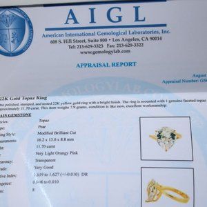 Certified Imperial Topaz 11.70ct Solid 22K Ring