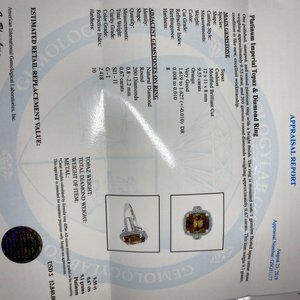 Certified Imperial Topaz 9.55ct Diamonds Plat Ring