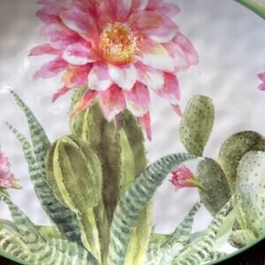 Step into the enchanting world of desert blooms with the Desert Beauty Melamine Platter by Certified International. This platter is a masterpiece of utility and splendor, the perfect canvas to present your culinary masterpieces. Each dish you serve is framed by the stunning imagery of desert cacti and their vibrant, blooming flowers, painted with a finesse that brings the allure of a sun-drenched oasis right to your table.
