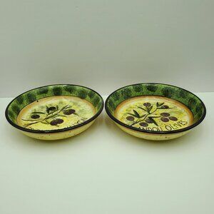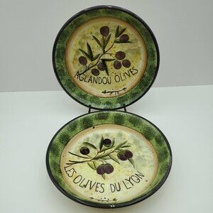 Certified International Susan Winget Garden of Olives Individual Pasta Bowls Serving Bowls Salad Bowls - Set of 2. Excellent pre-owned condition. 9.25" x 2". Aglandou Olives and Les Olives du Lyon.