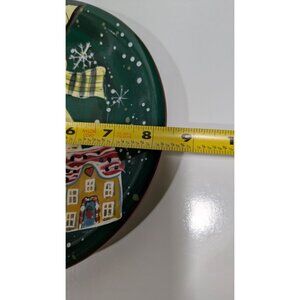 This charming holiday plate by Certified International showcases a delightful hand-painted snowman, gingerbread figure, and festive house. Intricately detailed, it evokes a sense of warmth and nostalgia. Measuring 8.25 inches, the vibrant colors and whimsical design make it a standout piece for seasonal gatherings or as a decorative display during the festive season.