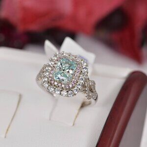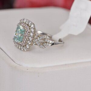 Certified Moissanite 2.0 ct Blue Green Radiant Cut Engagement Ring 925, sz 7