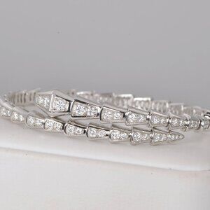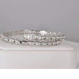 Certified Moissanite Diamond Snake Serpentine Bangle 7"