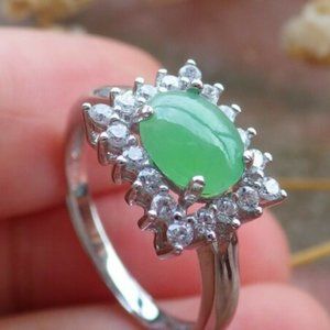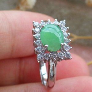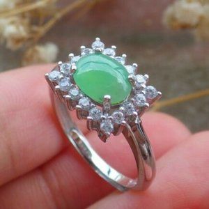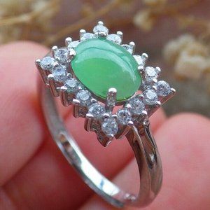 Certified Silver 925 Myanmar Burma JADE Jadeite Cabochon US 6.75 Adjustable Ring