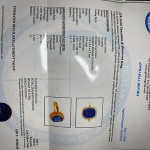 Certified Tanzanite 5.85ct Diamonds 22K Gold Ring