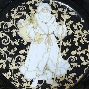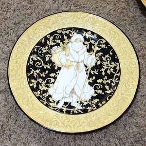 Certified International Betty Whiteaker Two Large Yellow Rim Christmas Plates