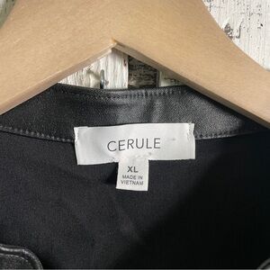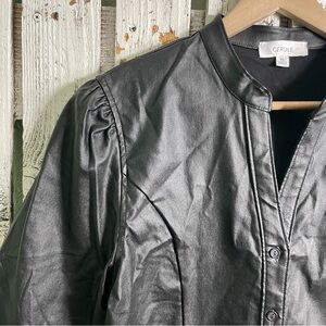 Cerule Black Faux Leather Top Womens Size XL Button Up V-neck Romantic Night Out
