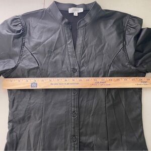 Cerule Black Faux Leather Top Womens Size XL Button Up V-neck Romantic Night Out Sophisticated Holiday Event Work Office Career