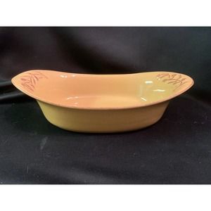 Vintage 14" x 8" x 3" Stoneware Cerutil Casserole dish. Pretty honey mustard color. In good condition.