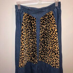Cervelle Medium Blue Animal Print Stretch Waist Pull On A-Line Maxi Skirt Modest