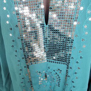 Excellent like new condition. No flaws to note. Women’s plus size Cervelle sequin bohemian chiffon peasant top size 3x.