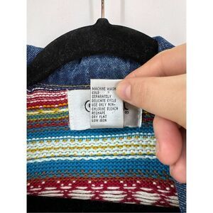 Cerville Women’s Multicolor Western Knit Sweater Denim Jean Jacket Medium