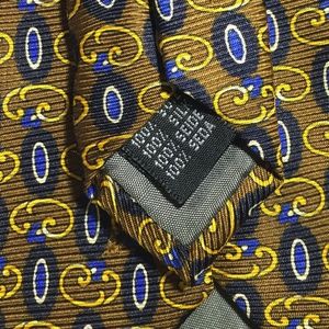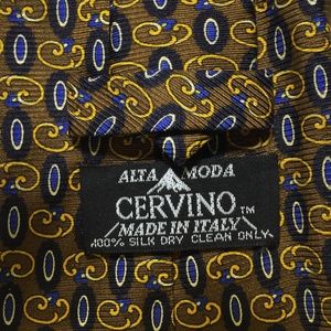 Cervino Alta Moda made in Italy Gold Blue Geometric 100% SILK men's Tie