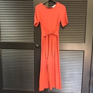 Ces Femme 100% Cotton Cropped Textured Jumpsuit with Front or Back Tie, Size Sm