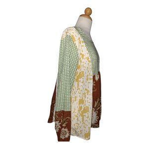 Ces Femme Boho Patchwork Long Sleeve Blouse Women's Size Small Relaxed Fit Top
