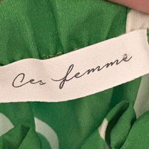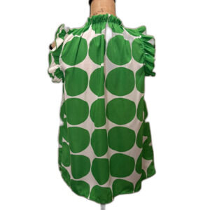 Ces Femme Bold Polka Dot Sleeveless Blouse Ruffle Trim Twee Green Size Small
