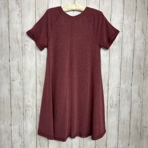 Ces Femme Burgundy Short Sleeve Plain Basic Pockets Comfy Casual T-Shirt Dress M