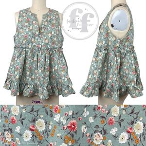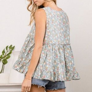 Ces Femme Cotton Ditsy Floral Print Ruffle Trim Babydoll Swing Tank Top Blouse