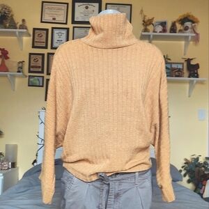 Very cute, soft and comfortable sweater ❤️ 3/4 length length wide batwing sleeves. Beautiful design. Straight stretchy bottom, gathered look. Great for casual or more elegant wear. Excellent used condition. No flaws.The fabric tag is a bit washed off, but it is polyester mix.