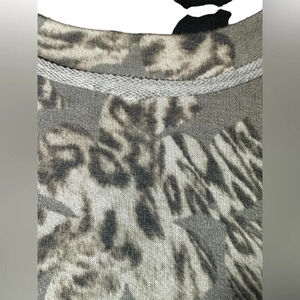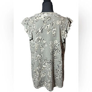 Ces Femme Gray Multi Floral Cheetah Print Top with Ruffle Detail Size Large