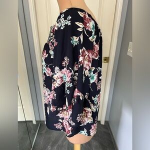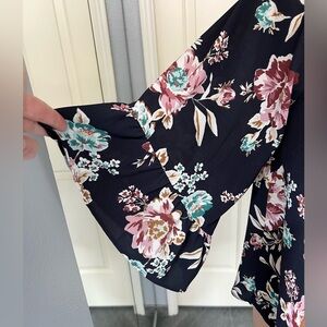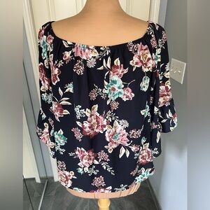 Ces Femme Navy Floral Bell Sleeve Cottagecore Peasant Blouse