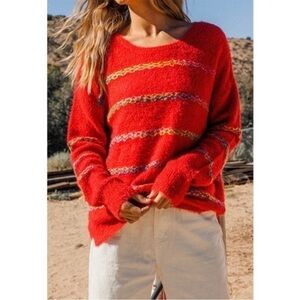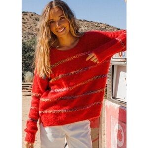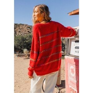 Ces Femme Red Multi Stripe Fuzzy Sweater Sz S NWOT
