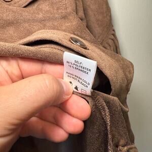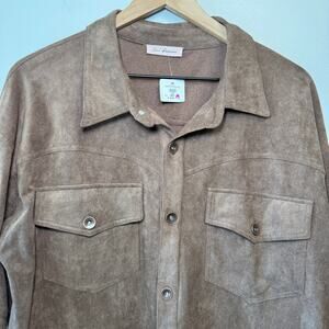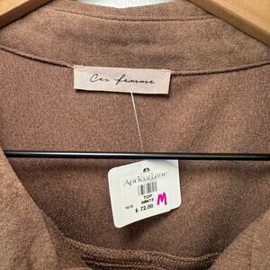 Ces Femme Women's Button Fringe Cropped Shirt Jacket Brown Size Medium NWT